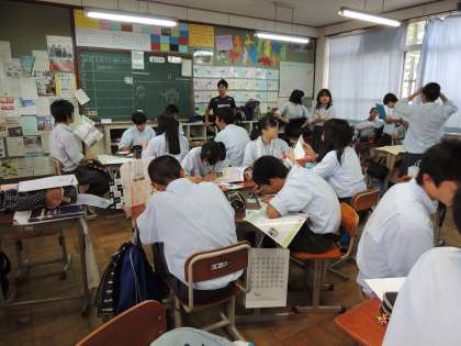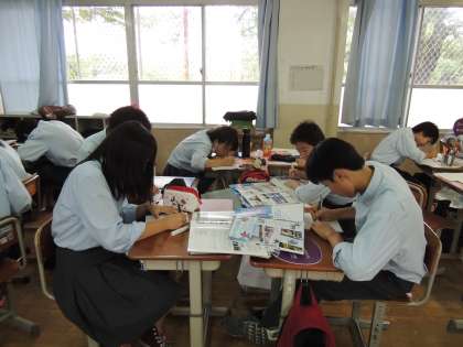 全員、無事に高校見学から帰校しました。いろいろと見学した内容を各クラス・各班ごとにまとめています。素晴らしい新聞ができるといいですね。