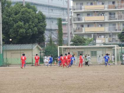 13日(日)に西京極中学校において2回戦が行われました。対戦相手は小栗栖中学校でした。前半は勢いよく攻め上がるときもありましたが、2点を先取され1対2で折り返しました。しかし、後半は連続して加点し逆転をするが、終了間際に得点され3−3でPK戦になりました。PKは、連続して決め、5−3で勝利を収めることができました。この調子で、3回戦以降もがんばってください。
