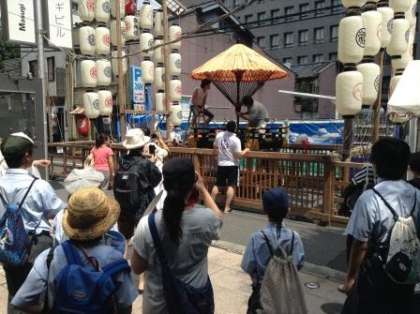 本日、1組全員で午前中に祇園祭の山鉾の見学に行ってきました。非常に暑い中でしたが、明日の巡行に備えている山や鉾に上がってして有意義な時間を過ごすことができました。