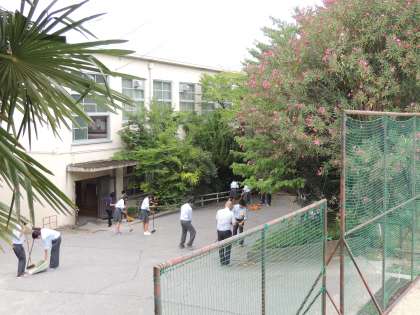 本日2日目のリーダー講習会です。地域の方々との交流会が予定されていますので、校内美化に一生懸命取り組みました。