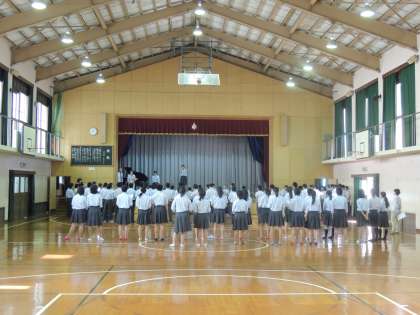 本日1限に体育館で学校祭舞台の部の発表に向けて学年練習を行いました。学年合唱「HEIWAの鐘」を全員で練習していました。本番に向けて時間がありませんが、がんばってください。