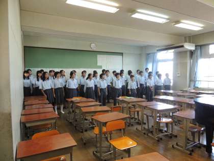 1年生の合唱の様子です。初めての合唱コンクールに向けて、各クラス、担任の先生中心に頑張っています。