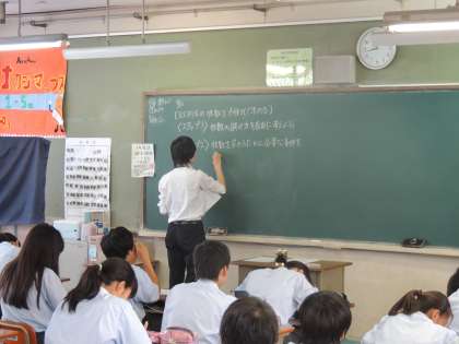 本日、3限に1年5組で研究授業が行われました。たくさんの先生方が見に来られました。緊張しながらも、がんばって授業を展開していました。明後日までですが、最後までがんばってください。