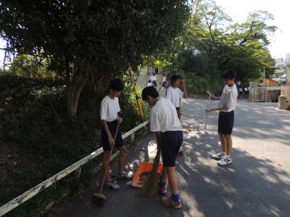 本日放課後に、明日開催される「学校祭展示の部」の準備に参加しない部活動の生徒たちが、校内の清掃活動を行ってくれました。本当にありがとうございました。明日からの「学校祭」がみんなの手で成功するように頑張りましょう!