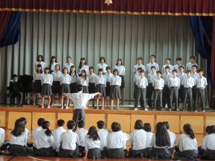 いよいよ明日、舞台の部の午前中に合唱コンクールが行われます。今日は最後の練習を各クラス頑張っていました。今までの練習の成果を十分に発揮して、クラスの絆を大切にして、精一杯歌ってください。