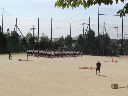 本日、1・2限に晴天のもと、学校祭体育の部に向けて学年合同体育が行われました。いよいよ来週の火曜日に迫った本番に向けて頑張って練習を行っていました。特に学年競技の入退場の練習などが行われました。