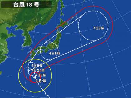 大型で非常に強い台風18号が日本列島に向かって進んでいます。日曜日から月曜日にかけて台風の影響が出ると予測されますので早めの備えをしてください。