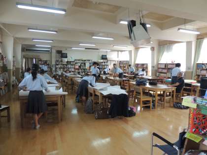 本日放課後、図書室で次期生徒会本部の立候補者の説明会が行われました。16名の立候補者が説明を受けた後、ポスター作りなどの作業をしました。立会演説会・投票は30日(木)5,6限です。選挙活動がんばってください。