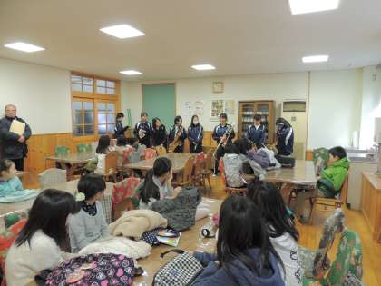 中学生が小学生に教えている姿や一緒に楽器を演奏している姿がとても良い雰囲気でした。