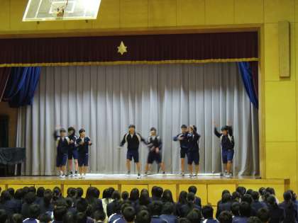 本日5限に体育館で、体育の授業で学習している「ダンス」の発表会が行われました。各グループごとに分かれて本当にすばらしい発表をしてくれました。