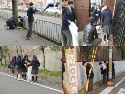 本日、早朝より生徒会が中心となって、正門・東門付近とかがやく丘付近の清掃活動を行いました。80名ほどの多くの生徒が参加してくれて作業を行い、非常に美しくなりました。今後も継続して行っていきたいです。