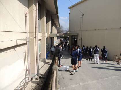 本日、公立高等学校の中期選抜学力検査が行われていますが、受検しない3年生は学校で美化活動をしてくれました。特に体育館周りの側溝には多くの泥がたまっていましたが、本当にきれいにしてくれました。ありがとうございました。