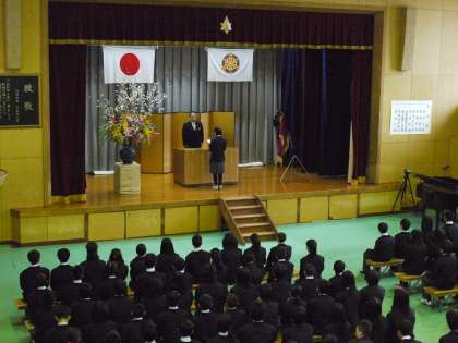 新入生の誓いの言葉の後,1年生の学級担任・副担任が紹介されました。入学式終了後,新入生は学級写真を撮って,それぞれのクラスに向かいます。