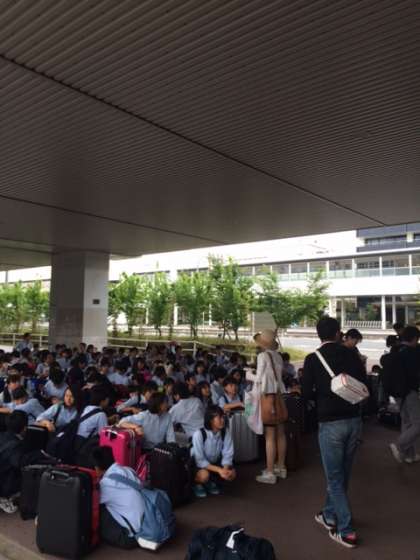 7時50分,伊丹空港に無事到着しました。現在,チケットを配布中です。