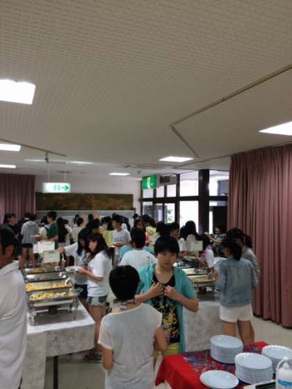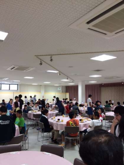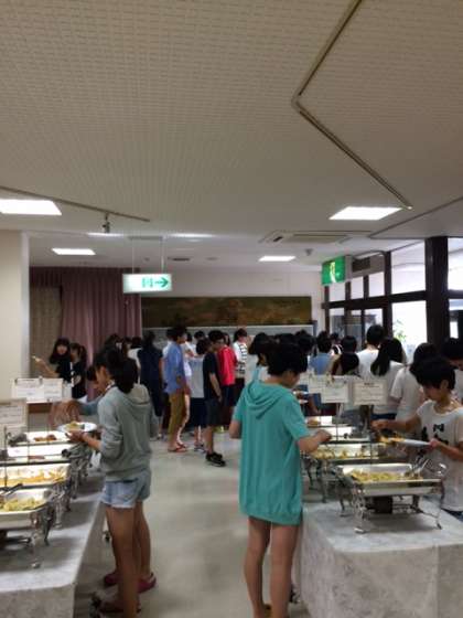 今から朝食をとります。3年生は全員元気です。朝食後,9時から体験活動を始める予定です。