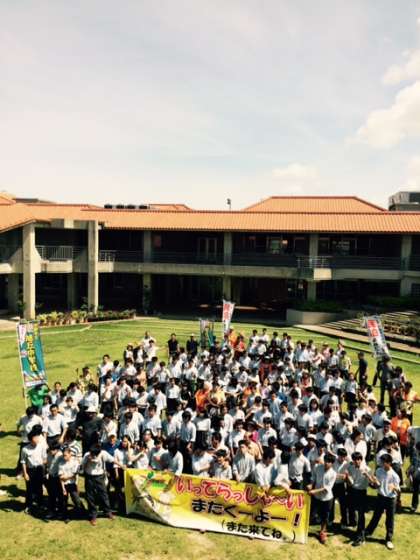 読谷村役場に集合してから、離村式を行いました。踊りを踊ったり、学年写真をとったり楽しく過ごせました。10:40予定通りバスに乗って、国際通りに向かいます。