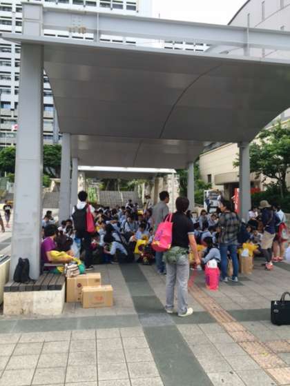 国際通りでの自主研修が終了し,生徒全員が無事に県庁前に集合しました。これから予定通り,首里城に向かいます。