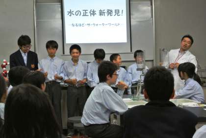 4組の様子です。水の性質についての学習「水の正体、新発見!!〜なるほど・ザ・ウォーターワールド〜」です。