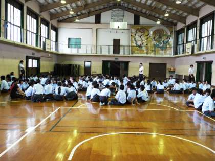 本日2時間目,1期最終の2年学年集会がありました。第1回やる気MAX杯の表彰の後,代議員を中心に学年レクリエーションを行いました。最後に,先生方が1期のまとめと学習面・生活面でのお話をしました。2期に入ると,いよいよ2年生が部活動や生徒会の中心として動いていくことになります。夏休みを有効に活用し,何事にも自主的に取り組むことができるよう,力を付けていってほしいと思います。