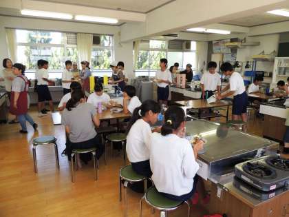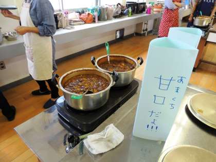 昼食の様子です。PTAの方のご協力で出来上がったカレーを,美味しくいただきました。ごちそうさまでした。さあ,昼からも頑張りましょう!