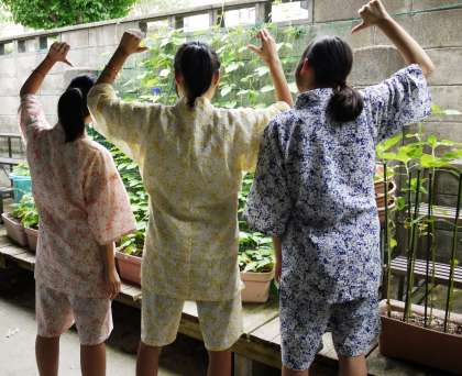 家庭科部3年生の作品「甚平」です。お揃いの生地で,とても上手に仕上がりました。暑い季節にピッタリですね!
