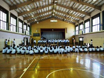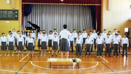 本日4時間目,1年生が合唱コンクールのリハーサルを行いました。本番の舞台に合わせた位置確認を行って,リハーサル開始。中学校で初めての合唱コンクールとあって,緊張感が高まる中で,一生懸命に歌っていました。