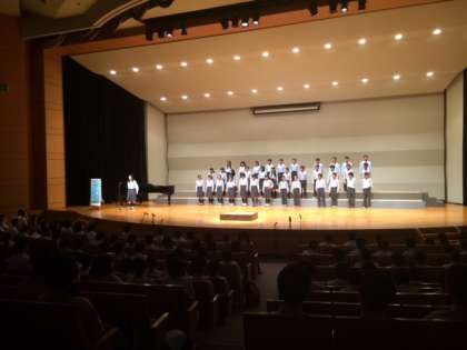 プログラム2番「1年生合唱コンクール」の様子です。生徒たちは精一杯歌っています。