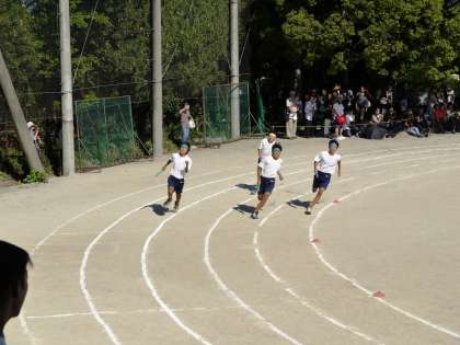 「男子学級対抗リレー」です。クラスの意地をかけて,全力疾走です。