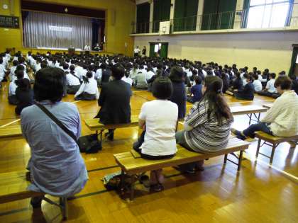本日午後,佛教大学の原清治先生をお迎えし「ネット社会と中学生」というタイトルで,ご講演をいただきました。ネットいじめやブログ・LINEなどに潜む危険性に触れつつ,どうすれば携帯電話やスマートフォンを上手に活用できるのかを,実例を挙げながらわかりやすく説明してくださいました。約1時間のお話が短く感じられるほど,生徒たちは集中して聴くことができました。また,保護者の方々にもご来校いただき,誠にありがとうございました。