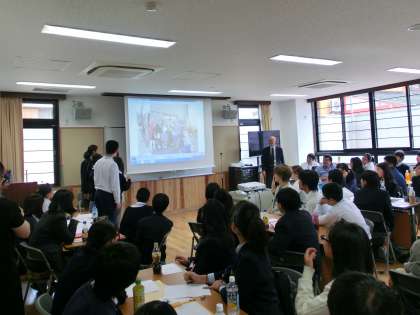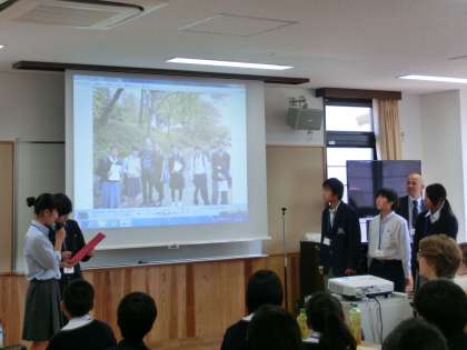 10月17日(土),開睛中学校第二施設において,ALTとの交流会が行われました。本校からは11名の生徒が参加し,いくつかのグループに分かれてインタビューなどのフィールドワークを行い,その結果を発表しました。こういう活動に積極的に参加する姿勢は,素晴らしいと思います。ご苦労様でした。