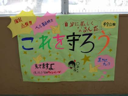 2年生は,学校祭の取組を通じて見えてきた学年の課題を克服するために,各委員会を中心に活動を進めています。「服装を正す」「ベル着を守る」など具体的な目標を決めて,学校生活の向上を目指します。これからの旭丘中学校の柱となる2年生,頑張ってます!