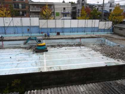 10月31日(土)から,プールのリニューアル工事が始まりました。授業との関係で,土曜日・日曜日・祝日を利用して,大きな音の出る工事を行っています。防塵のために水をまきながら作業を行い,北山通り側に防音・防塵用のシートを設置していますが,近隣の方々にはご迷惑をおかけし,誠に申し訳ございません。特に大きな音と粉塵の出る解体作業は,11月中に終了する予定です。また,リニューアル工事自体は,来年の3月中に終了いたします。ご理解とご協力を,よろしくお願いいたします。