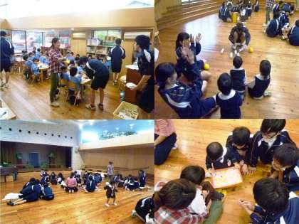 本日から,3年生はクラスごとに家庭科の授業として幼稚園を訪問し,実習を行っています。最初は緊張していた生徒たちも,徐々に慣れてくると,園児たちと一生懸命関わっていました。