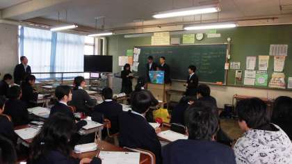 本日6限,1年生は各クラスで校外学習の発表会を行いました。グループごとに廻ったコースでの体験をまとめ,イラストやプレゼンテーションソフトを使って発表しました。一生懸命に準備したことが伝わってくる内容で,素晴らしかったと思います。