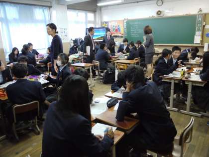 本日6限,北海道岩見沢市から来られた6名の先生方が,2年生の道徳の授業を視察されました。先生方は,グループでの活発なやり取りや,クラスでの発言の様子を見て,感心されていました。普段の授業での頑張りが,よく表れていたのではないかと思います。