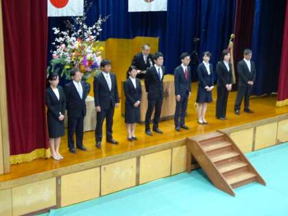 新入生の誓いの言葉の後,1年生の学級担任・副担任が紹介されました。入学式終了後,新入生は教科書を受け取って,それぞれのクラスで学級開きを行いました。