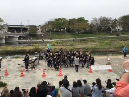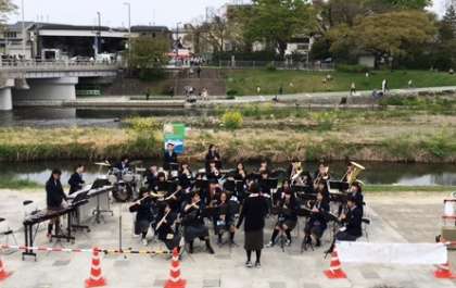 4月10日(日),本校の吹奏楽部が植物園西側の鴨川左岸において行われた「第42回鴨川茶店」に参加し,素晴らしい演奏を披露してくれました。当日は、天候にも恵まれ、たくさんの観客に来ていただきました。ご苦労様でした。これからも頑張ってください!