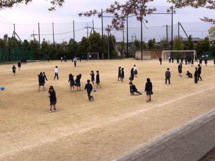 少し雨が降っていましたが,たくさんの生徒たちがグラウンドで元気に遊んでいました。さあ,午後からも集中して授業に取り組みましょう!