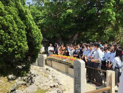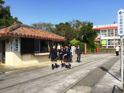 ひめゆり平和資料祈念館での様子です。平和講話の後,資料館内を見学しました。戦争の残酷さや平和の大切さについてしっかりと考えることができる,良い機会になったと思います。この後は,読谷村役場へ移動し,入村式を行います。