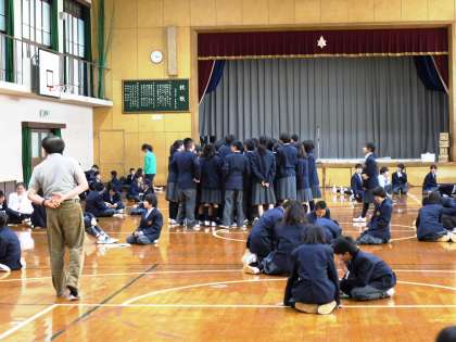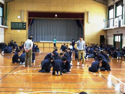 本日6限,1年生は体育館で「出会いのヒューマン」を行いました。少人数のグループに分かれ,協力しながら課題をクリアすることで,お互いを知る取組です。もっともっと仲良くなって,素晴らしい学年にしていってください!