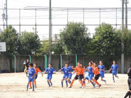 4日(祝)に洛南中学校で準々決勝が行われました。対戦相手は洛南中学校です。前半終了間際に先制され、厳しい展開でしたが、あと一歩及ばず2対3で惜敗しました。この悔しい思いを次の夏の大会では晴らしてください。期待しています。