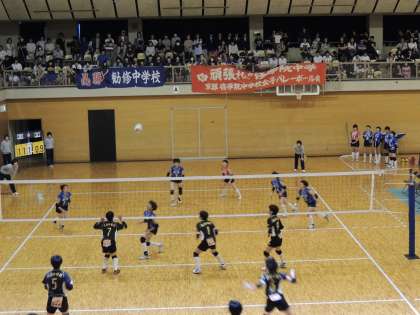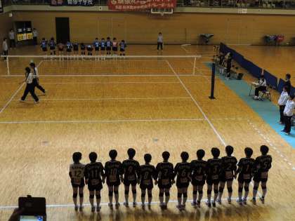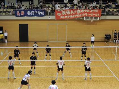 4日(祝)に伏見港体育館で準決勝が行われました。勧修中学校と対戦し,残念ながら0対2で敗退しました。また,その後行われた順位決定戦でも修学院中学校に0対2で敗退しました。しかしながら,最後まで頑張りぬきました。堂々の第3位です。この自信と悔しさを胸に夏の大会はさらなるジャンプアップを見せてください。期待しています!