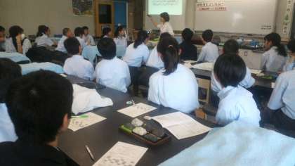 4組の生物の講座「メダカの『め』」と,5組の地学の講座「緑色岩ってどんな石?」の様子です。みんな興味津々で取り組んでいます。