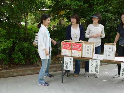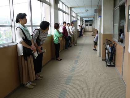 今日,本校では土曜参観を催しました。写真は制服リサイクル,募金活動,1時間目の廊下の様子です。曇り空のおかげで気温もあまり上がらず,多くの方々に来校していただきました。本当にありがとうございました。