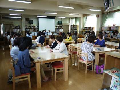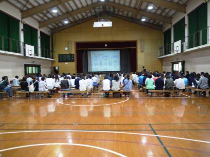 1年学年懇談会と2・3年進路説明会です。学年懇談会では,4月以降の1年生の学校生活の様子を具体的に伝え,校外学習についての説明も行いました。進路説明会では,公立高校の入試制度の概要や昨年度の進路状況について説明しました。入試制度については,毎年変更されている点があります。わからないことについては,遠慮なさらずに質問していただければと思います。