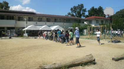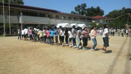 レクリエーション大会が始まりました。大縄跳びです。クラスで団結して,記録を伸ばしてください。頑張れ!