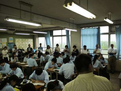 本日午後,旭丘中学校と校区3小学校(4校の頭文字をとって「HATT」と呼びます)の合同授業研修会が行われました。4校の先生方が旭丘中学校に集まり,3つに分かれて1年生の道徳,2年生の国語,3年生の数学の授業を参観しました。