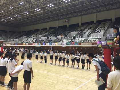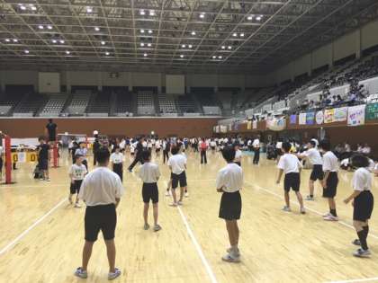 本日,島津アリーナ(府立体育館)で合同球技大会が開催されています。午前中は,西賀茂中学校・加茂川中学校との合同チームで,バレーボールをしました。みんな一生懸命に取り組んでいました。午後からはドッジボールの予定です。