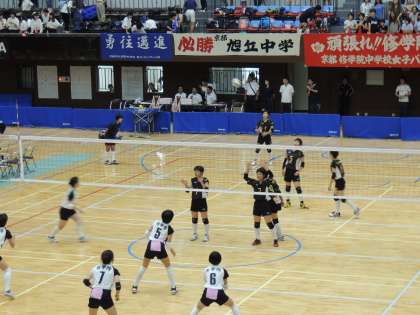 本日(23日),ハンナリーズアリーナにおいて準決勝が行われました。対戦相手は双ヶ丘中学校で,最後まで頑張りましたが0対2で敗退しました。しかしながら立派な第3位です。その後行われた順位決定戦では修学院中学校に2対0で勝利し,京都市第3代表で府大会に挑むことになりました。30日・31日に山城総合運動公園体育館で行われる府大会では,近畿大会出場を目指して頑張ってください!期待しています!