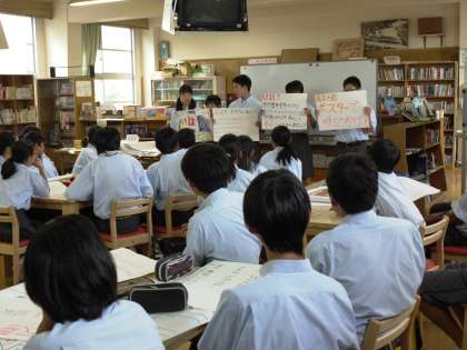 午後の取組の様子です。HOPについて,午前中のフィールドワークで発見した地域の課題を解決するために,どのような活動ができるのかをグループで話合い,プレゼンしました。最も評価が高かったグループには,夏休み明けの全校集会で発表してもらう予定です。また,地域の課題に根差した活動を行うことで,今後地域との「つながり」をより深めていきたいと考えています。今日は一日,ご苦労様でした。